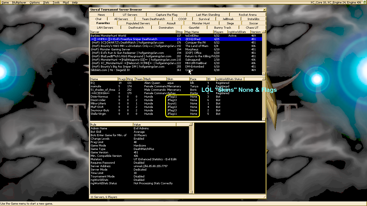 I'm very happy to no longer have anything to do with these, they are all yours. Either way if "friends" are coming with hacked UT versions lagging game, this also it's not my problem. I spent a lot of time trying harder to figure which one was the asshole in stage and damaging game, I'm truly happy to no longer forcing my eyes looking there because I don't have energy and age for deviating these jerks, if these are now days "players", good luck with serving games.